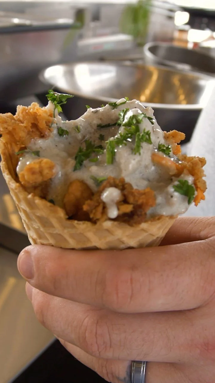 White Cheddar Cheese curds coated in funnel cake batter, deep fried, and topped with a scoop of fresh lemon whipped cream. Finished with a drizzle of berry sauce!